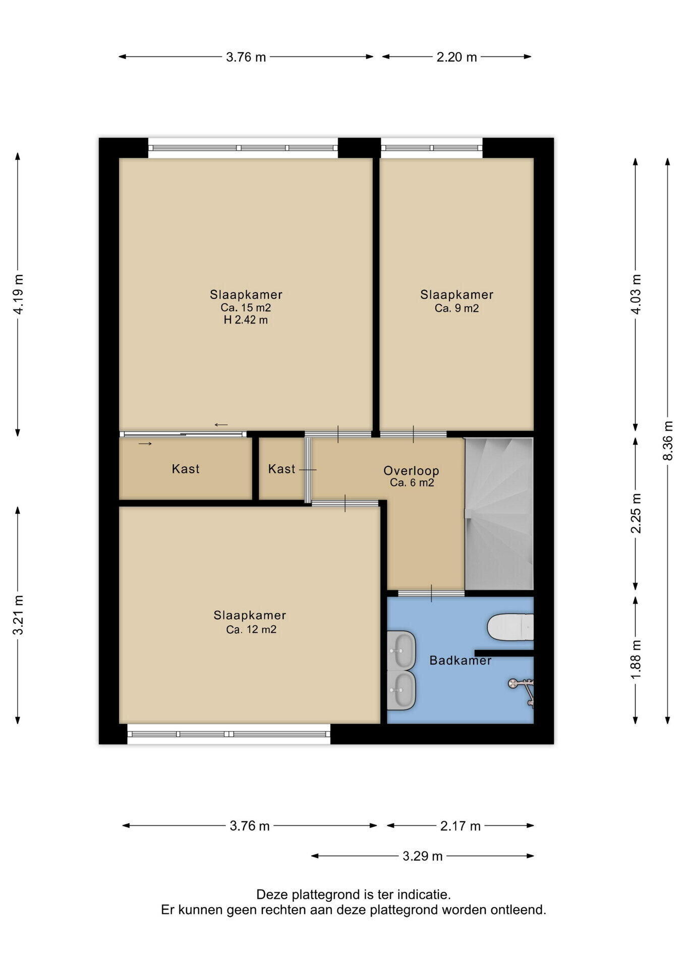 - 98 m² (15 meter diep en 6.5 meter breed)